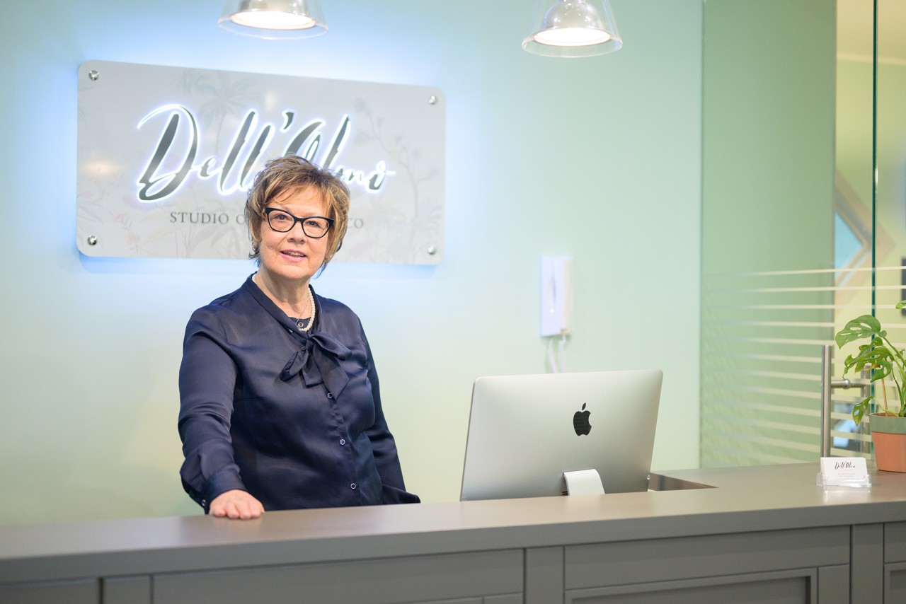 La signora Rita, moglie del Dr. Fabio, è la responsabile della segreteria. Accoglie i pazienti, prenota per loro gli appuntamenti e si occupa della contabilità dello studio proponendo la metodica di pagamento più adeguata alle esigenze del paziente.
